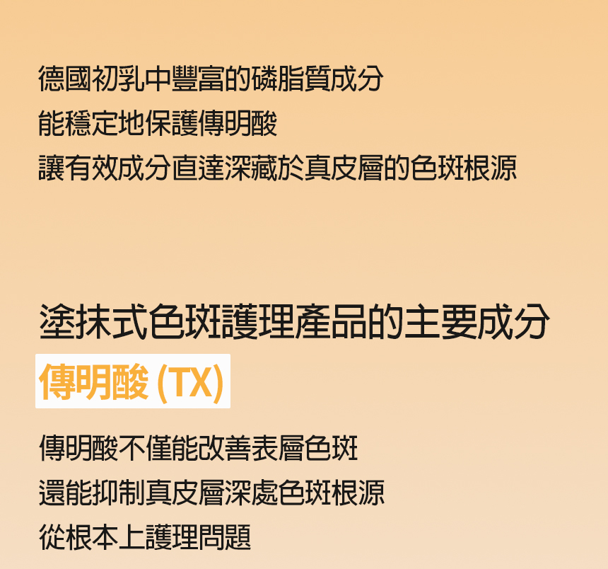 🌟 傳明酸TX + 德國牛初乳 + 獨家美白抗氧成分GLUNAC™